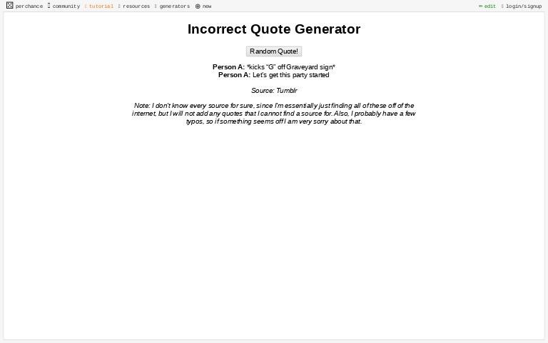 Scatterpatter's Incorrect Quotes Generator : Incorrect-Hamilton-Quotes Jefferson I Am a Man With Very ... - Keep in mind that some of the.. Prompt from scatterpatter's incorrect quotes generator, let me know if you like the comics, i'm new at making them. Answered 1 month ago @ 29 apr 2021 with 167 notes via/source. Hab nochmal mit scatterpatter's incorrect quotes generator gespielt. Reminder that it's no different from screenshotting some funny jjba related youtube comment, and thus bannable. If your generator is popular, and others have imported it into their own, you will break their generators!